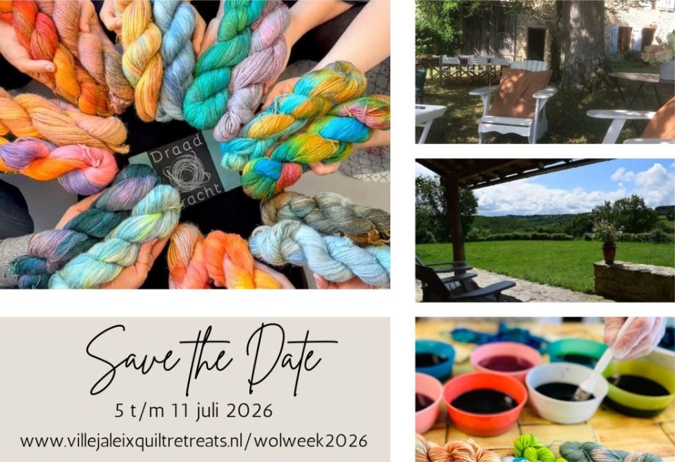 Nieuw! en zo leuk! Draadkracht "haakt aan" bij Villejaleixquiltretreats. Kety organiseert al jaren in haar huis in de Auverge quiltretreats. Een week lang volledig verzorgd ondergedompeld worden in de prachtige omgeving, goed gezelschap en je lievelingshobby. Dat is ook echt wat voor Draadkracht en daarom presenteren wij met trots: La vie en laine - wolweek in de Auvergne.